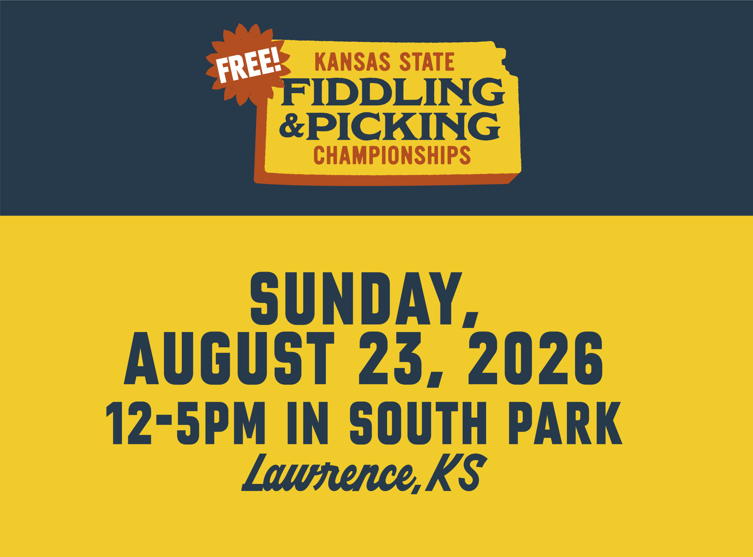 Sunday, August 23, 2026 will be the 45th Annual Kansas State Fiddling and Picking Championships (FidPick)